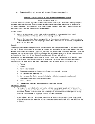 replace Article XVIII of the NJCAA Handbook. Unacceptable forms of behavior include, but are not limited to: