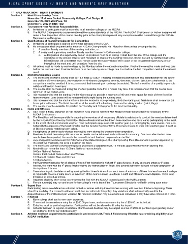 B. No contestants shall be permitted to enter an NJCAA Championship Half Marathon Meet unless accompanied by: