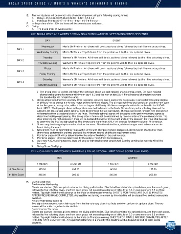 2021 NJCAA MEN’S AND WOMEN’S SWIMMING & DIVING NATIONAL MEET DIVING ORDER OF EVENTS