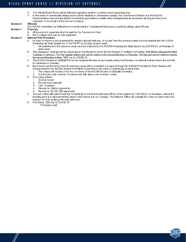 G. The official NCAA Rules will be followed regarding weather conditions and suspended play.