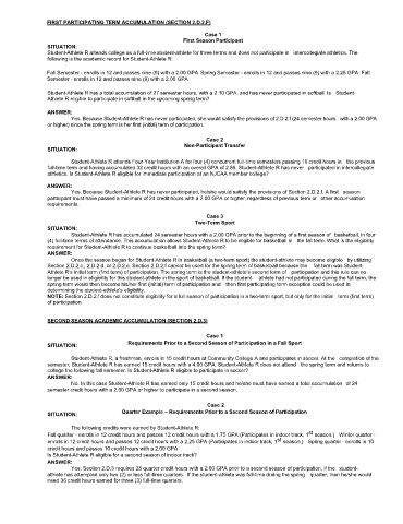 full-time term and having accumulated 32 credit hours with an overall GPA of 2.86. Student-Athlete R has never participated in intercollegiate