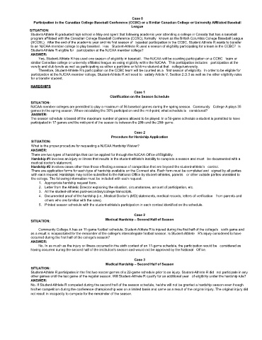 (BCCBL).  After the end of the academic year and his first season of  baseball participation in the CCBC, Student-Athlete R wants to transfer