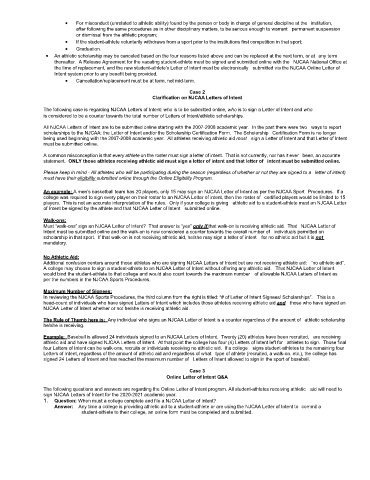 being used beginning with the 2007-2008 academic year. All athletes receiving athletic aid must sign a Letter of Intent and that Letter of Intent