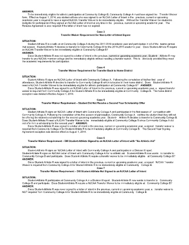 be offering the student a scholarship for the second upcoming academic year. Student- Athlete R decides to transfer to Community College B.