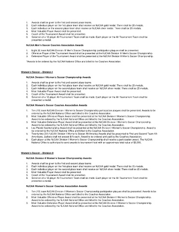 1. Ten (10) team NJCAA Division I Women’s Soccer Championship participation plaques shall be presented. Awards to be