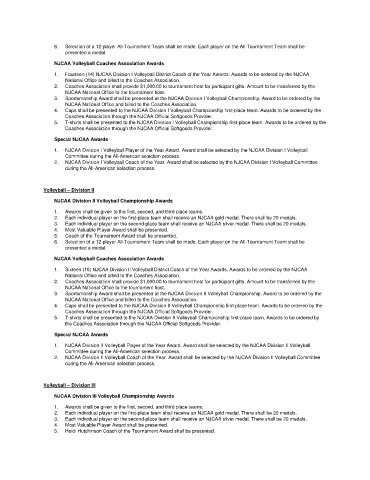 5. T-shirts shall be presented to the NJCAA Division II Volleyball Championship first-place team. Awards to be ordered by