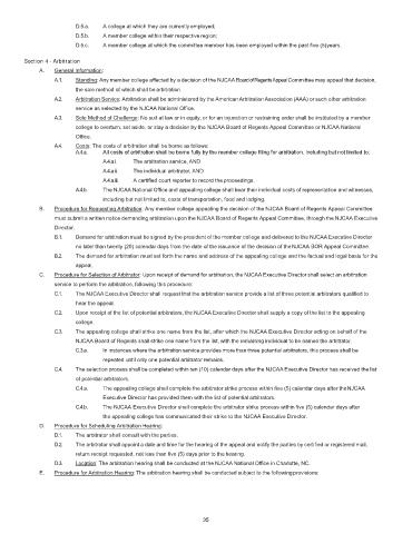 B. Procedure for Requesting Arbitration: Any member college appealing the decision of the NJCAA Board of Regents Appeal Committee
