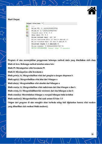 Program di atas menunjukkan penggunaan beberapa method statis yang disediakan oleh class