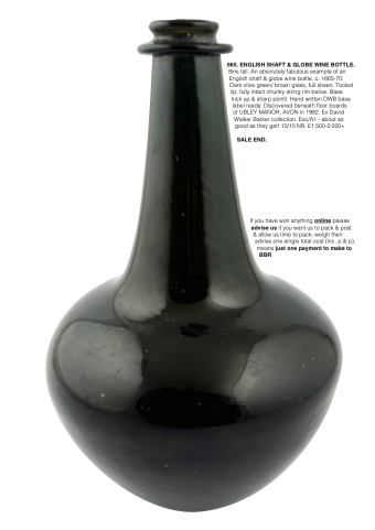665. ENGLISH SHAFT & GLOBE WINE BOTTLE.