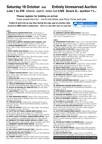 Saturday 18 October 2025 Entirely Unreserved Auction