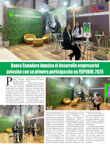 inversión que ofrece el banco. gia de apoyo al sector produc- espacio como la FEIPOBOL,