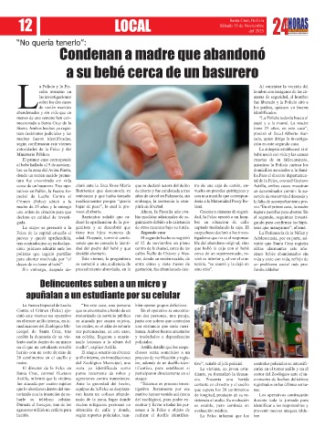 policías que ingirió pastillas decidió abortarlo. calles Ñuflo de Chávez y War- cerca de un supermercado, re- cinco bebés abandonados sin