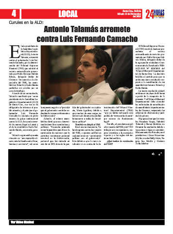 blo cruceño y al país que el go- que el gobernador continúe en- cia, Mario Aguilera, debido a toral Departamental (TED) les de Creemos, respetando los