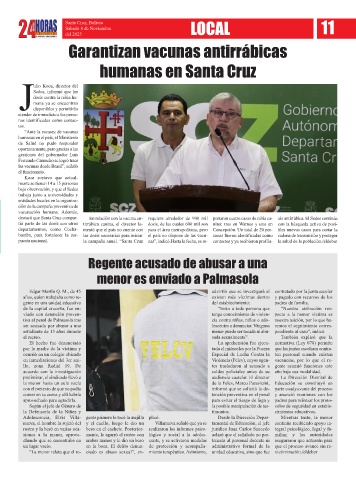 tió parte de las dosis con otros tirrábica canina, el director la- dosis, de las cuales 600 mil son nina: tres en Warnes y uno en con la búsqueda activa de posi-