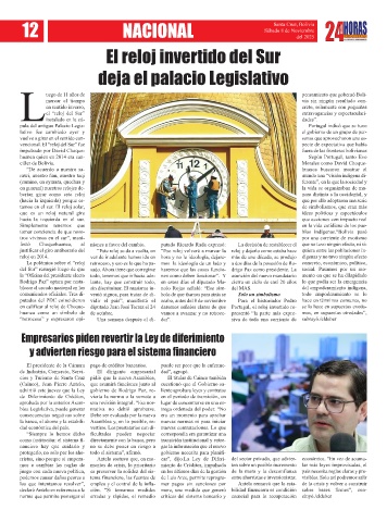 en calificar al reloj de Choque- diputado Juan José Torrez el 24 daremos señales claras de que Portugal, el reloj invertido re- se lo hace en supuestos exotis-
