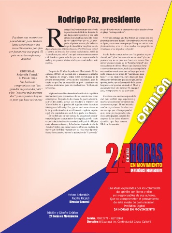 dos” y la coyuntura hoy no internacional, pero por motivos obvios y tan tácticos como Paz tiene una enorme responsabili-