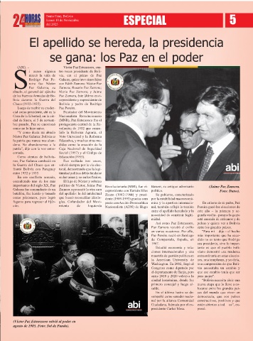 importantes del siglo XX, Paz político de Víctor, Jaime Paz Revolucionaria (MIR), fue vi- Banzer, su antiguo adversario (Jaime Paz Zamora.