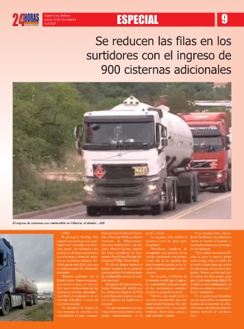 una caravana de cisternas con bilizar el mercado primero, otor- entrando. Entre todos vamos a miento nacional de combusti-