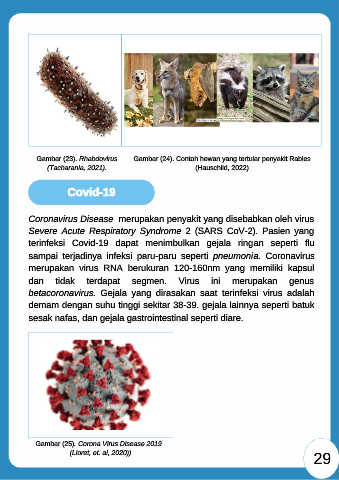 Gambar (23). Rhabdovirus Gambar (24). Contoh hewan yang tertular penyakit Rabies