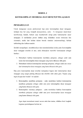1. Memahami hakikat keterampilan membuka pelajaran, sebagai salah satu