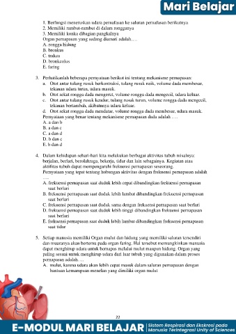 3. Perhatikanlah beberapa pernyataan berikut ini tentang mekanisme pernapasan: