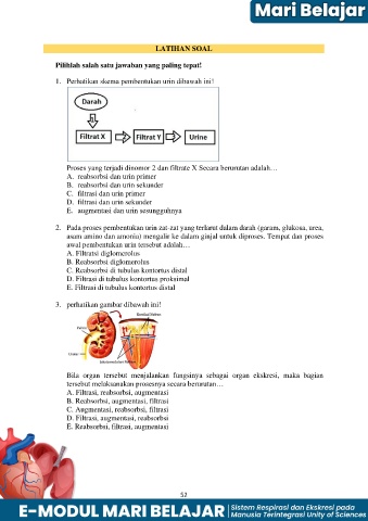1. Perhatikan skema pembentukan urin dibawah ini!