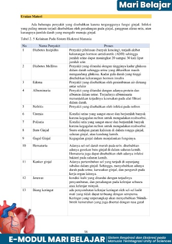 Tabel 2. 5 Kelainan Pada Sistem Ekskresi Manusia