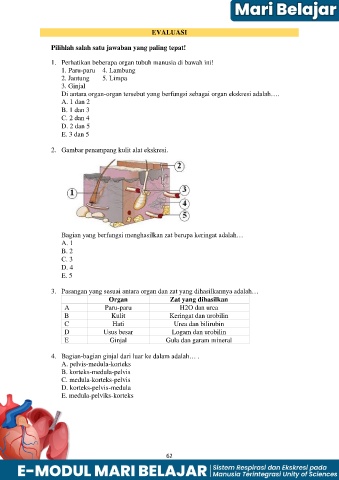 Di antara organ-organ tersebut yang berfungsi sebagai organ ekskresi adalah….