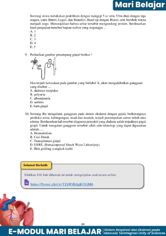 10. Seorang ibu mengalami gangguan pada sistem ekskresi dengan gejala berkurangnya