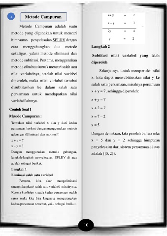 gabungan (Eliminasi dan subtitusi)! Dengan demikian, kita peroleh bahwa nilai