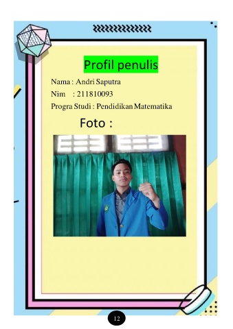 Profil penulis Nama : Andri Saputra Nim : 211810093 Progra Studi : Pendidikan Matematika Foto : 12
