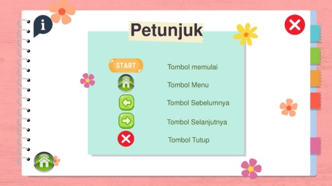 Petunjuk Tombol memulai Tombol Menu Tombol Sebelumnya Tombol Selanjutnya Tombol Tutup