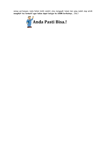 semua pertanyaan, maka kalian boleh sendiri atau mengajak teman lain yang sudah siap untuk mengikuti tes formatif agar kalian dapat belajar ke UKBM berikutnya... Oke.? Anda Pasti Bisa.!