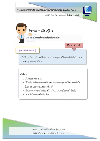 ชุดกิจกรรม การสร้างสรรค์หนังสืออิเล็กทรอนิกส์ด้วยโปรแกรม DeskTop Author 17