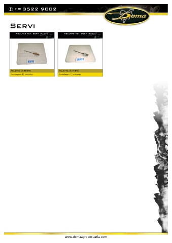 (18) 3522 9002 Servi Agulhas Vet. Servi 30x15 Agulhas Vet. Servi 30x20 AGULHAS DE FERRO AGULHAS DE FERRO Embalagem: 12 unidades Embalagem: 12 unidades www.domaagropecuaria.com