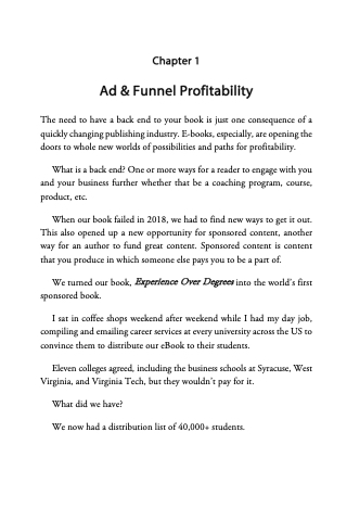 The need to have a back end to your book is just one consequence of a quickly changing publishing industry. E-books, especially, are opening the doors to whole new worlds of possibilities and paths for profitability.