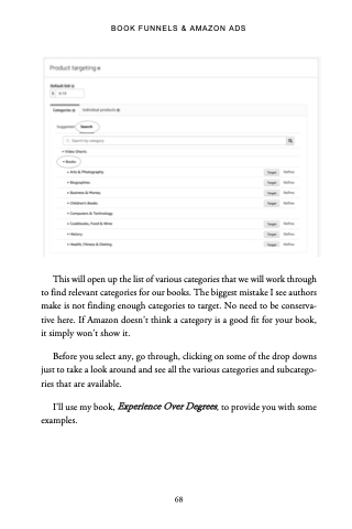 This will open up the list of various categories that we will work through to find relevant categories for our books. The biggest mistake I see authors make is not finding enough categories to target. No need to be conserva- tive here. If Amazon doesn’t think a category is a good fit for your book, it simply won’t show it.