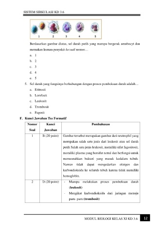 5.  Sel darah yang fungsinya berhubungan dengan proses pembekuan darah adalah…
