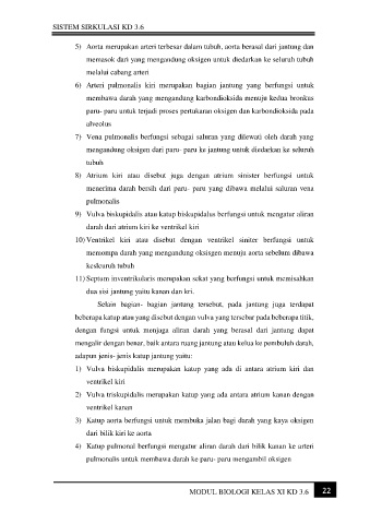 3) Katup aorta berfungsi untuk membuka jalan bagi darah yang kaya oksigen