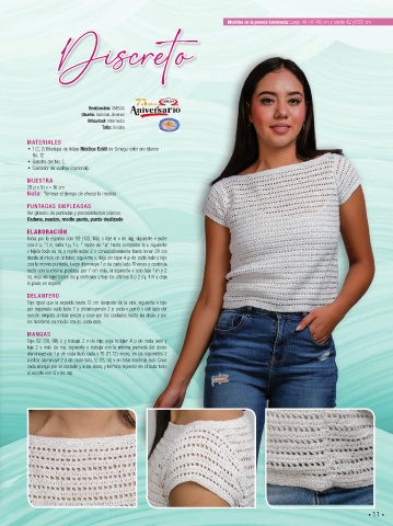con la misma puntada, luego disminuye 1 p de cada lado 11 veces y continúa