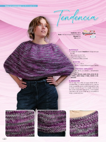 circular con aguja de canevá y cambia a aguja del No. 8, teje