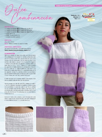 cm de jersey de d, cambia nuevamente a color lila y teje 8 cm de