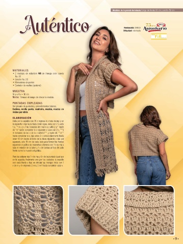 Medidas de la prenda terminada: Largo de frente 93 cm y ancho 52 cm