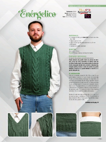 Inicia por la espalda, monta 98, (108, 118) p y teje 13 v en