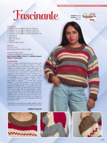 en color marfil, 1 d en color tabaco* y repite de *a*, siguiente v teje