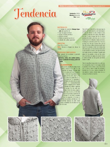 • 3 madejas de estambre Omega Espe- Para el frente monta 40 p y teje igual que la