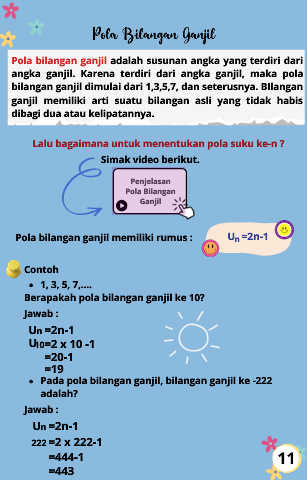 Pola bilangan ganjil adalah susunan angka yang terdiri dari