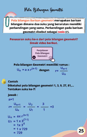 Diketahui pola bilangan geometri 1, 3, 9, 27, 81,...