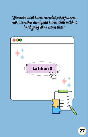 "Semakin awal kamu memulai pekerjaanmu, maka semakin awal pula kamu akan melihat hasil yang akan kamu tuai." Latihan 3 27