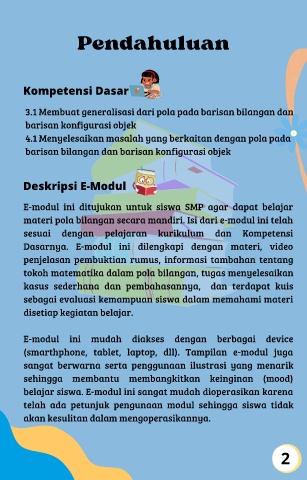 materi pola bilangan secara mandiri. Isi dari e-modul ini telah